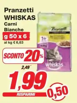 | Pranzetti WHISKAS Carni Bianche 50 g x 6 | Prix Quality | €1,99 | 30 agosto 2024 | 09 settembre 2024 | |||