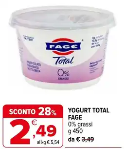 | Yogurt total fage | Iperal | €1,45 | €0,99 | €0,46 Sconto | 21 giugno 2023 | 04 luglio 2023 | |