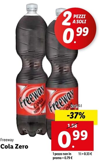 | Freeway Cola Zero Zucchero 1,5 l | Lidl | €0,59 | €0,45 | €0,14 Sconto | 04 luglio 2022 | 10 luglio 2022 | |