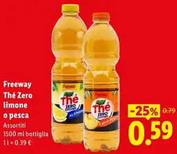 | Freeway Thè al limone o alla pesca Zero 1,5 l | Lidl | €0,79 | €0,59 | -25% | 08 dicembre 2024 | 15 dicembre 2024 | |