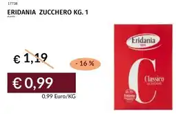 | 1 | Eridania zucchero 1 kg | Prezzemolo e Vitale | €1,19 | €0,99 | -16% | 24 febbraio 2026 | 07 marzo 2026 | Guarda l'offerta | |