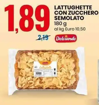 | Lattughette con zucchero semolato 180 g | Eurospin | €2,19 | €1,89 | €0,30 Sconto | 30 gennaio 2025 | 09 febbraio 2025 | |