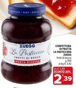 | Confettura di frutta la pasticcera ZUEGG 700 g | Iperal | €2,99 | €2,39 | -20% | 21 agosto 2024 | 04 settembre 2024 | |